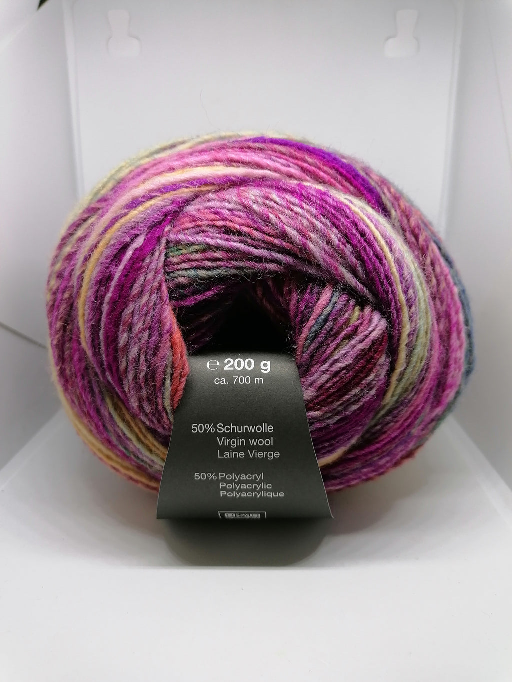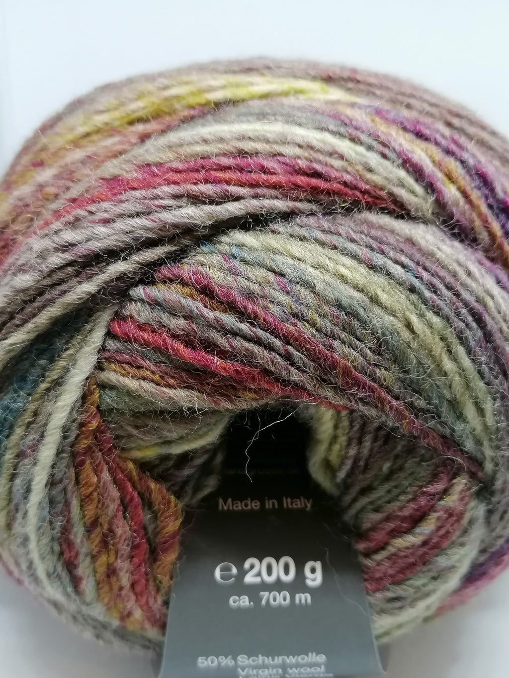 Flot flerfarvet garn. Garnet danner selv de flotteste striber med forskellige intervaller. Super godt til både sjaler, bluser og trøjer.