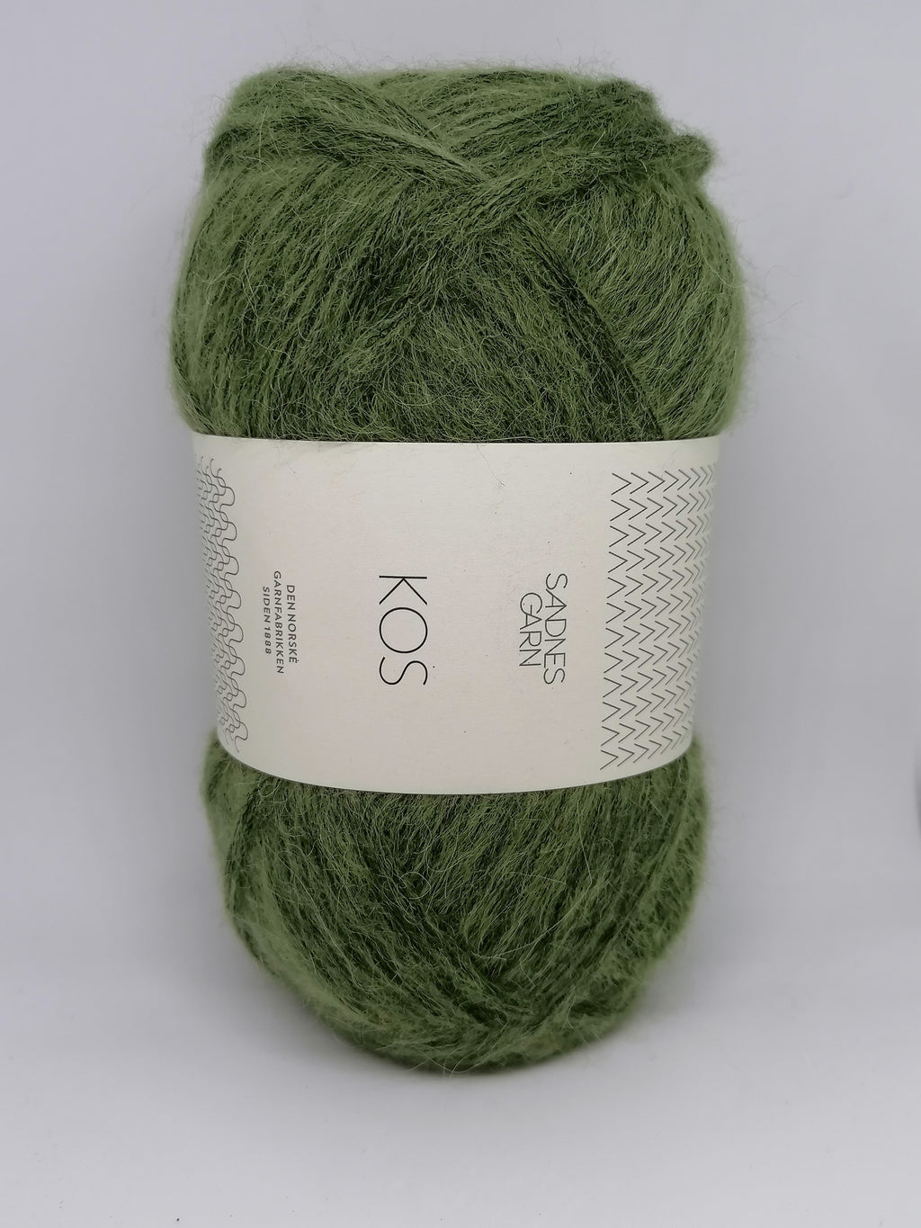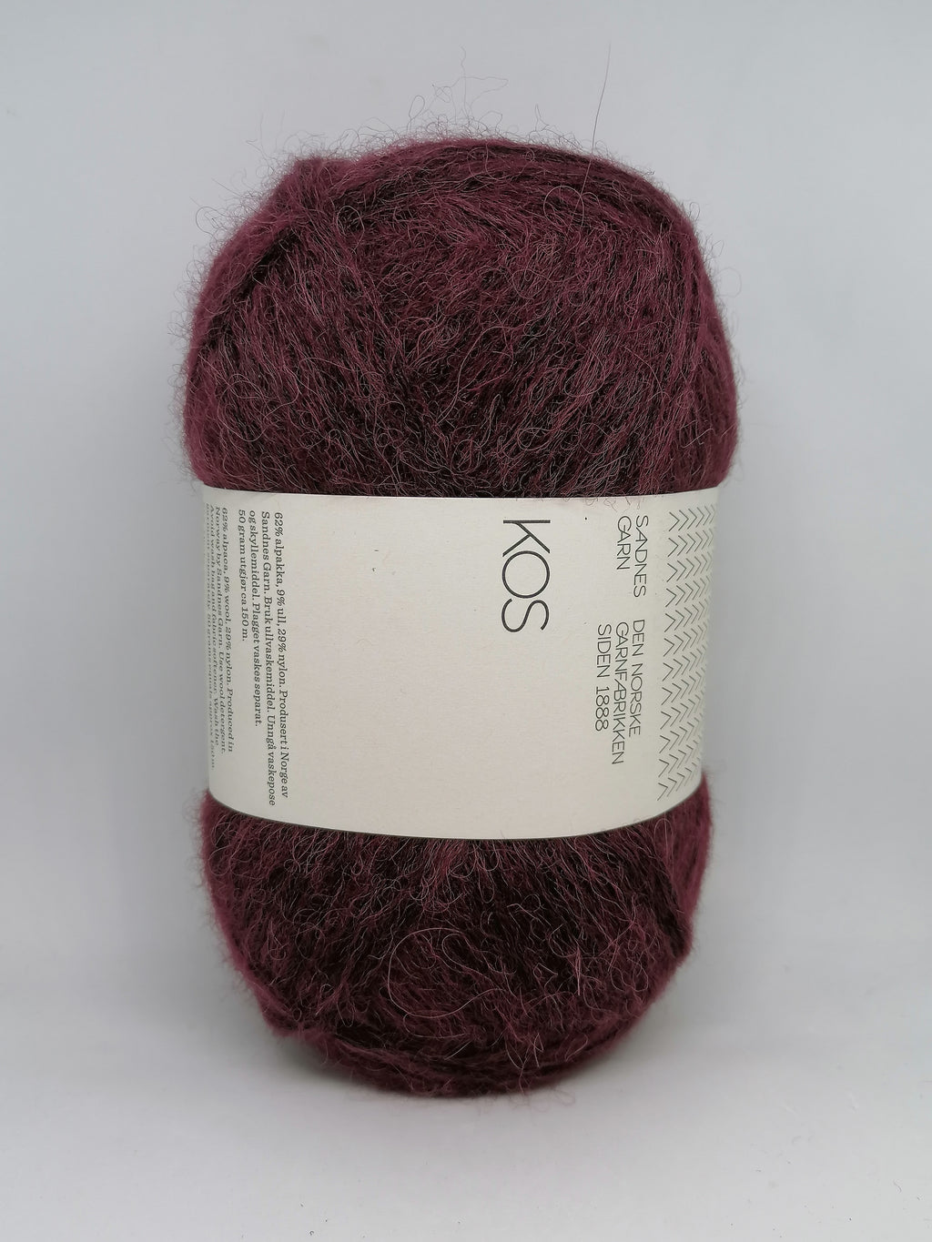 Kos består af alpakkafiber som sammen med ull bliver blæst ind i en nylonstrømpe. Dette giver et blødt, let og luftig garn.