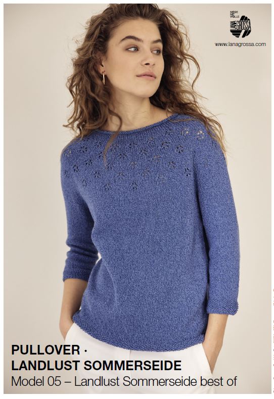 Skøn sommerblusen strikket i den lækre Landlust Sommerseideer. Blusen er strikke oppefra og ned, med rundt bærestykke og 3/4 lange ærmer.
