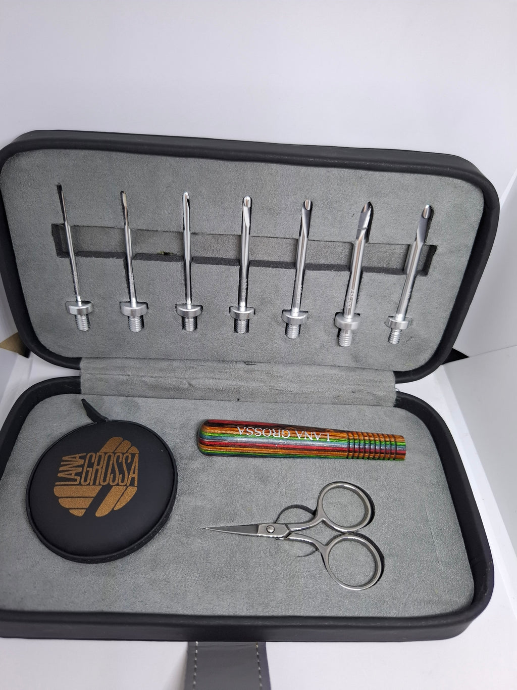 Lækkert hæklenålesæt med udskiftelig nålestørrelse. Skaftet er af flot udført træ og ligger godt i hånden.