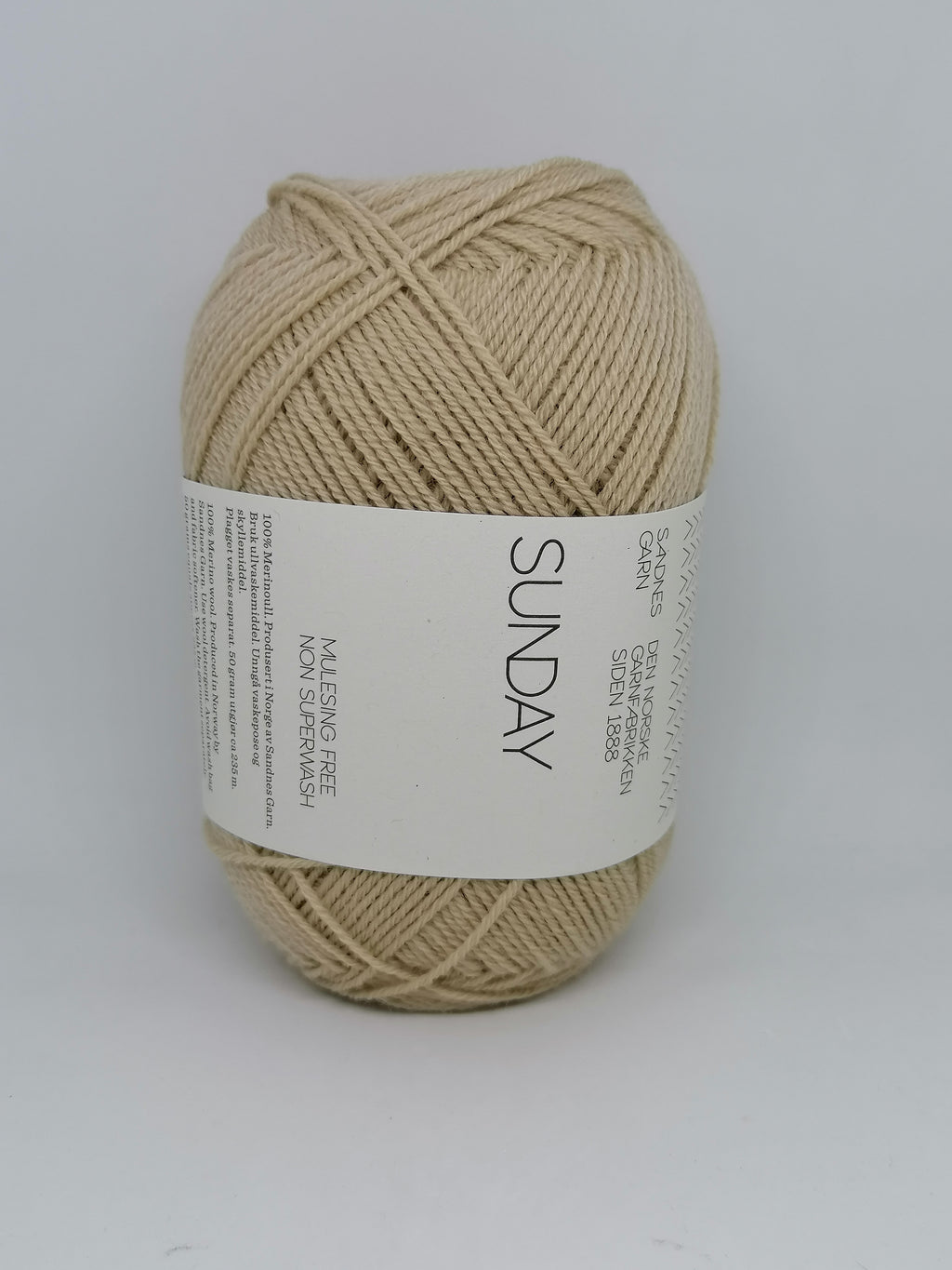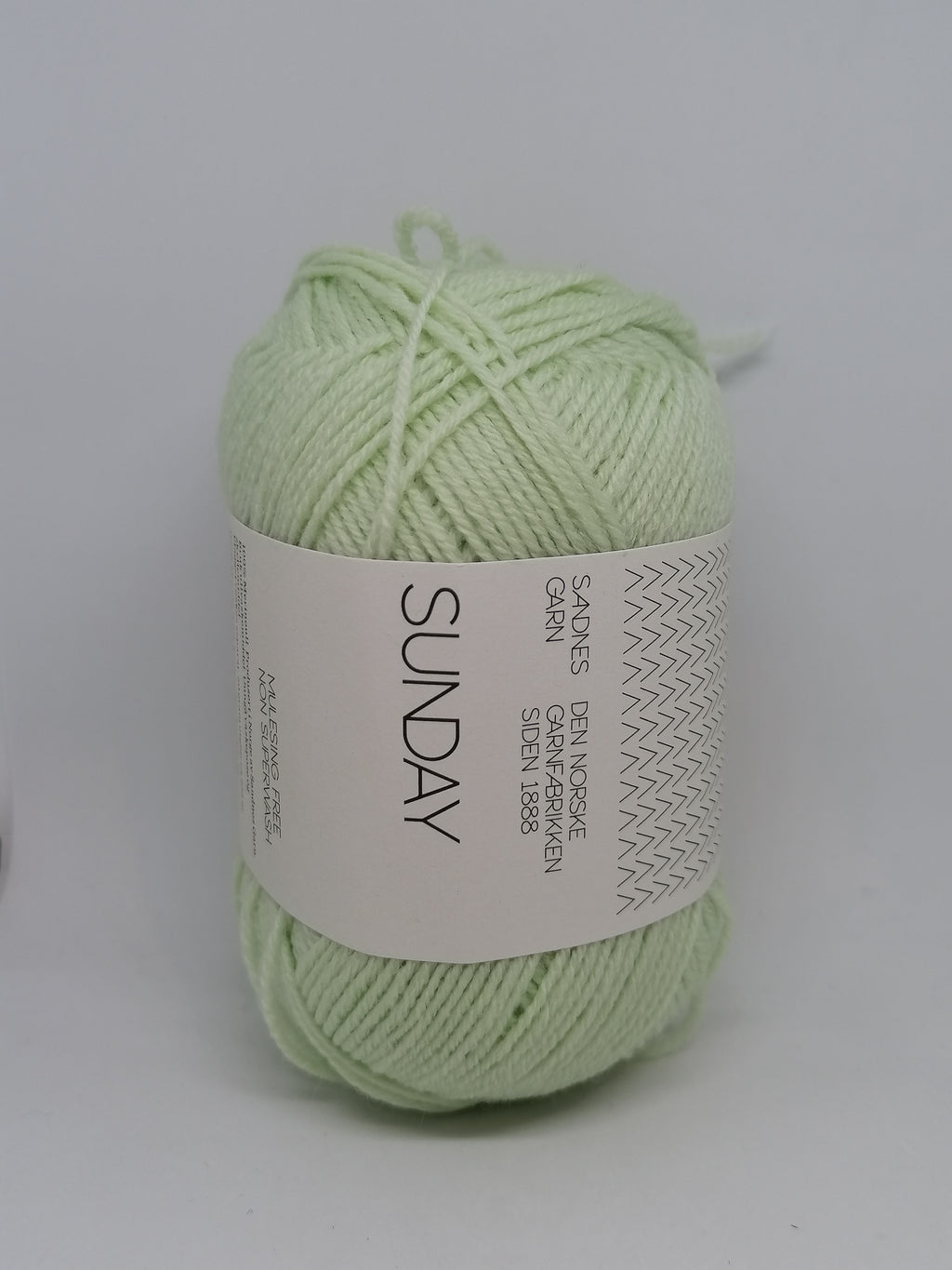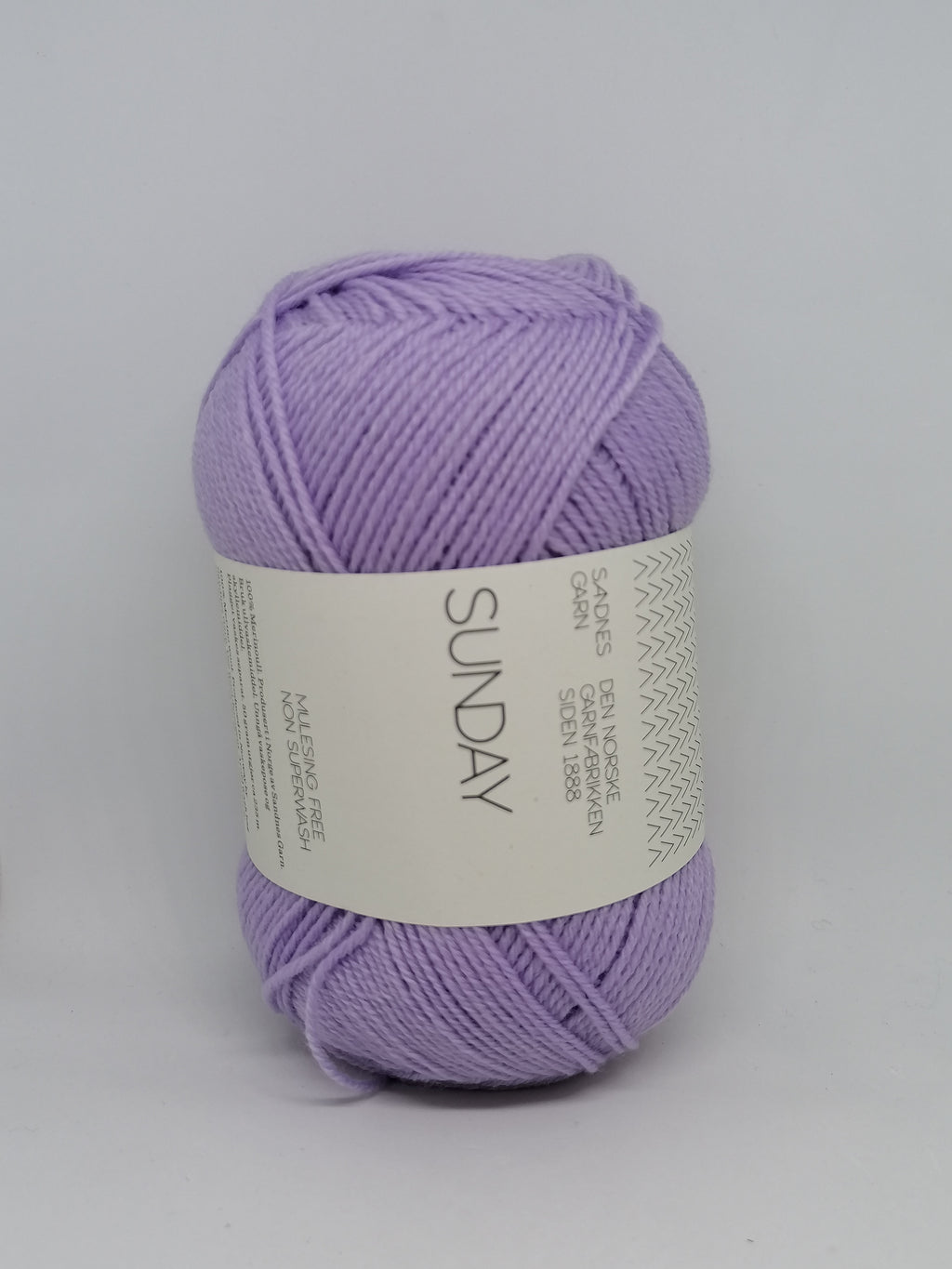 Sunday er Sandnes Garns tyndeste 100 % merinould og er det perfekte basisgarn. Et tyndt ikke-superwash behandlet garn som kan strikkes med enkel og dobbelt tråd. Eller strikkes sammen med Tynn Silk Mohair.